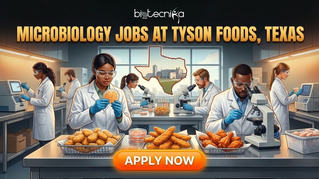 Tyson Foods is hiring a Lab Microbiologist (1st Shift) for its North Richland Hills R&D Food Safety Laboratory in Texas. This is a full-time role. The Microbiology Jobs at Tyson Foods offer hands-on experience in analytical microbiology, quality systems, and food safety testing within one of the world’s leading food companies.