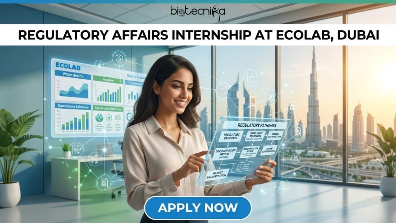 Looking for a Regulatory Affairs internship in a global company? This Regulatory Affairs Intern role at Ecolab Careers offers hands-on experience in regulatory documentation, data management, and compliance processes. This Regulatory Affairs Internship in Dubai is making it ideal for students aiming to build a career in regulatory affairs.
