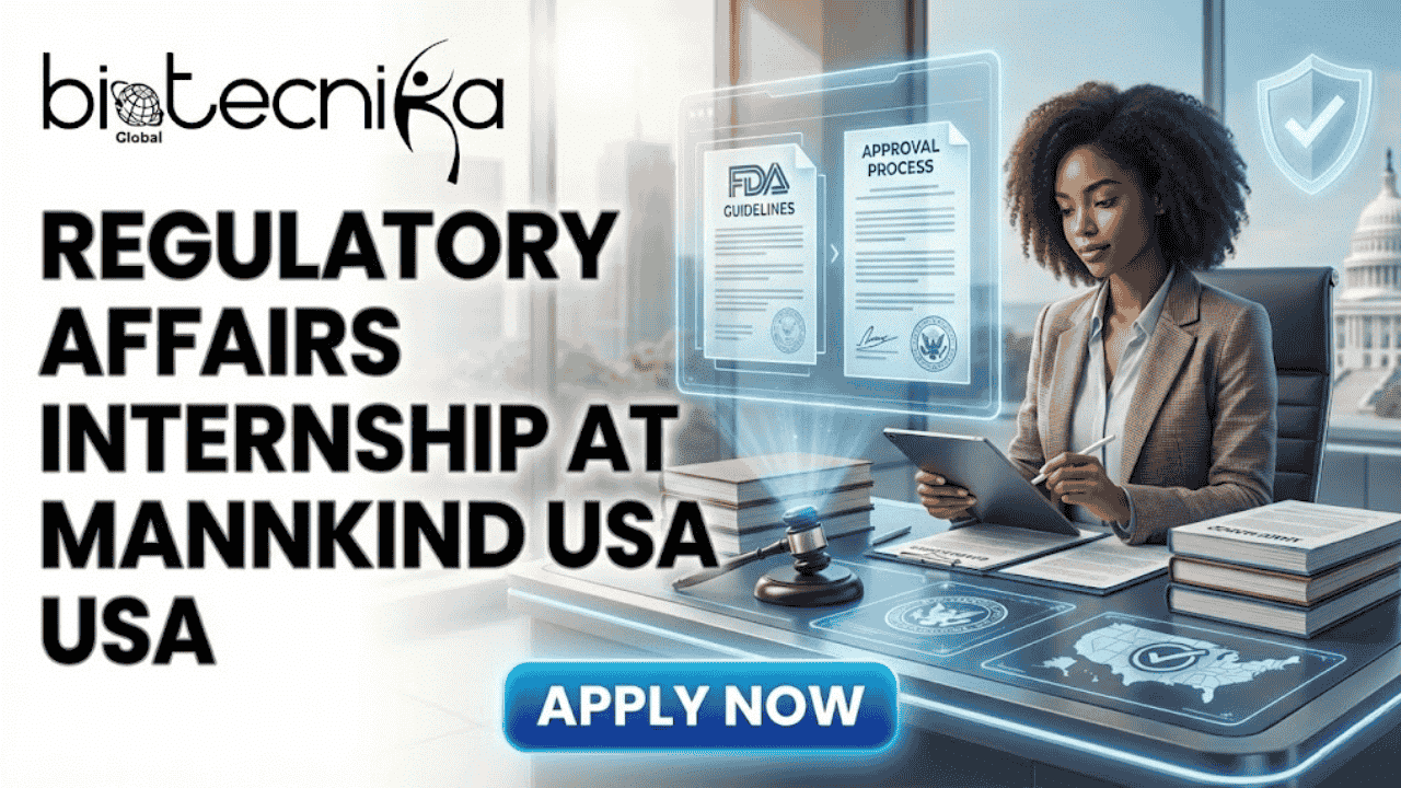 Looking to break into Biotechnology careers with real-world impact? This regulatory affairs internship at MannKind Corporation in the USA offers a rare opportunity for life science students and recent graduates to gain hands-on experience in regulatory documentation, Drug Master Files (DMFs), and FDA-aligned compliance. Ideal as a job opportunity for life science graduates, this internship in USA places you inside a fast-growing biopharmaceutical company transforming chronic disease care.