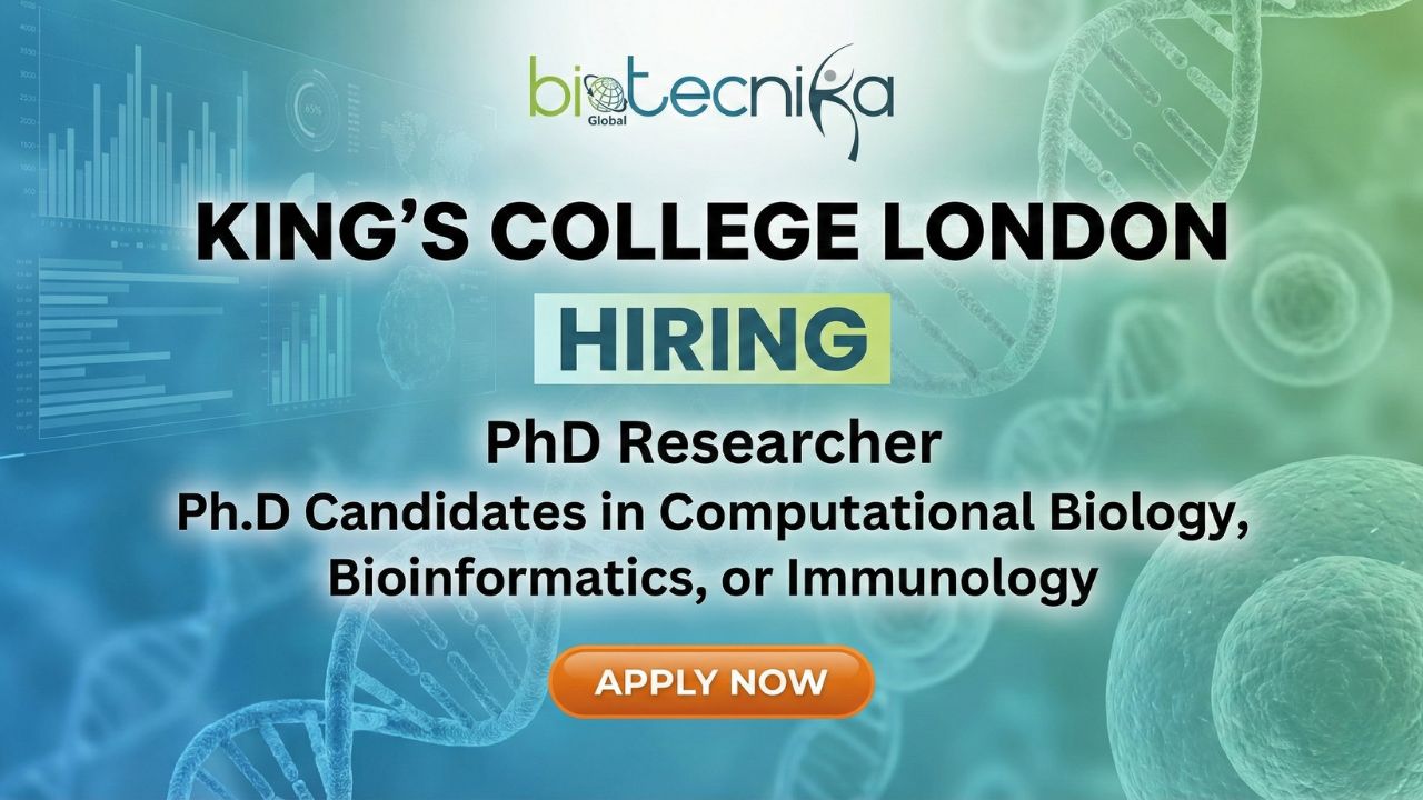 Looking for a cutting-edge research job? King’s College London invites applications for a PhD Researcher in Computational Immunology. This full-time, on-site position in London allows you to work with interdisciplinary teams, analyze large-scale immunological data, develop computational models, and contribute to world-class research publications. Join one of the top universities globally and be part of transformative research jobs in the UK.